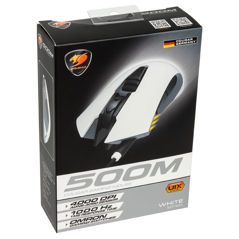 Die Cougar 500M Gaming Maus zeichnet sich neben ihrem dezenten und doch edlen Design in mattem Weiß mit grauen Seitenflächen vor allem durch die verwendete Technik aus. Hier wurde ein bewährter optischer 4.000-DPI-Sensor aus dem Hause Avago mit äußerst haltbaren und zuverlässigen Microswitches von Omron kombiniert - in Verbindung mit dem sehr hochwertigen Gehäuse mit sehr griffigen Seitenflächen aus Gummi und einigen weiteren Gaming-orientierten Details hat Cougar hier ein absolut ernstzunehmendes Werkzeug für Gewinner geschaffen!