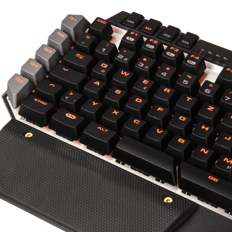 Mit einer speziellen Ausrichtung auf FPS-Games bietet die 700K eine Handballenauflage mit zusätzlich magnetisch anzubringendem Gummi-Segment für Shooter wie CS:GO oder Battlefield auf der Seite der WASD-Tasten - dieses kann auch auf der rechten Seite angebracht werden. Auch die G-Keys (5 davon auf der linken Seite) lassen sich damit problemlos erreichen. Die sechste Taste ist für die Nutzung mit dem rechten Daumen nah der Leertaste platziert. Weitere Bewegungen der Hände sind nicht nötig und lenken somit auch nicht vom Spielgeschehen ab.