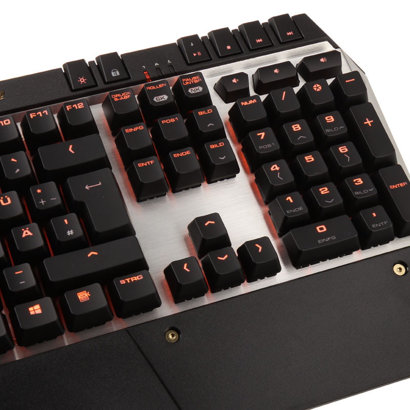 Die Tastatur an sich ist perfekt. Mich stört das "nur" orange LED Licht nicht. Zudem ist sie sehr stabil gebaut und mit den Noise Dampener von Caseking ist sie auch nicht zu laut. Die Makrotasten an der Seite waren für mich wichtig und dazu noch der faire Preis.